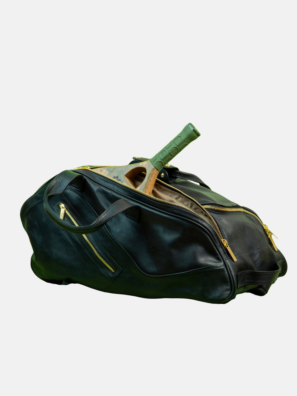 EKSKLUSIV PADELTASKE I ÆGTE LÆDER - SORT / GULD