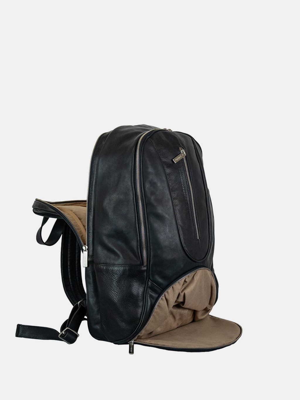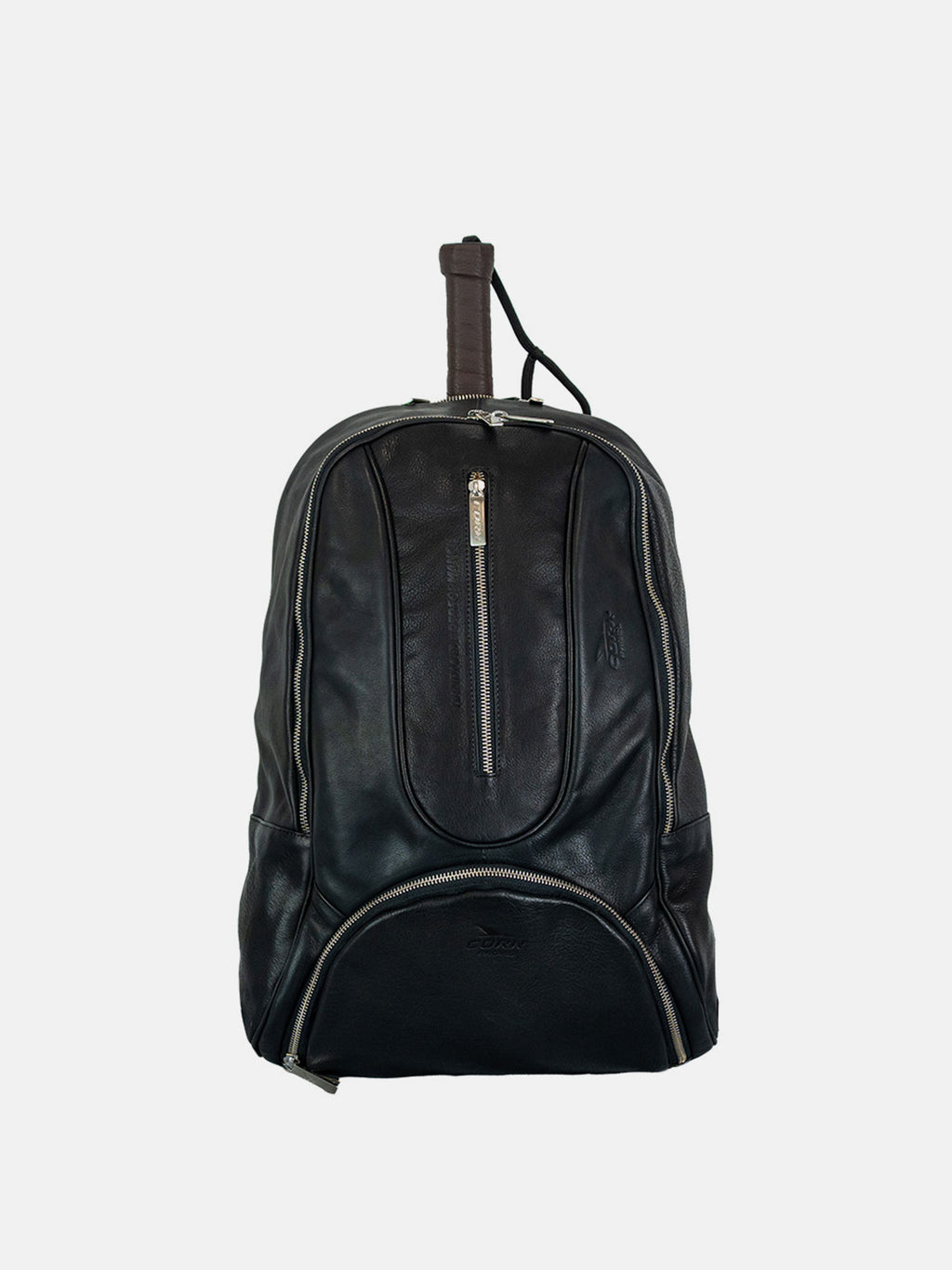 Eksklusiv rygsæk, håndlavet i ægte læder med indgraveret CORK PADEL-logo.